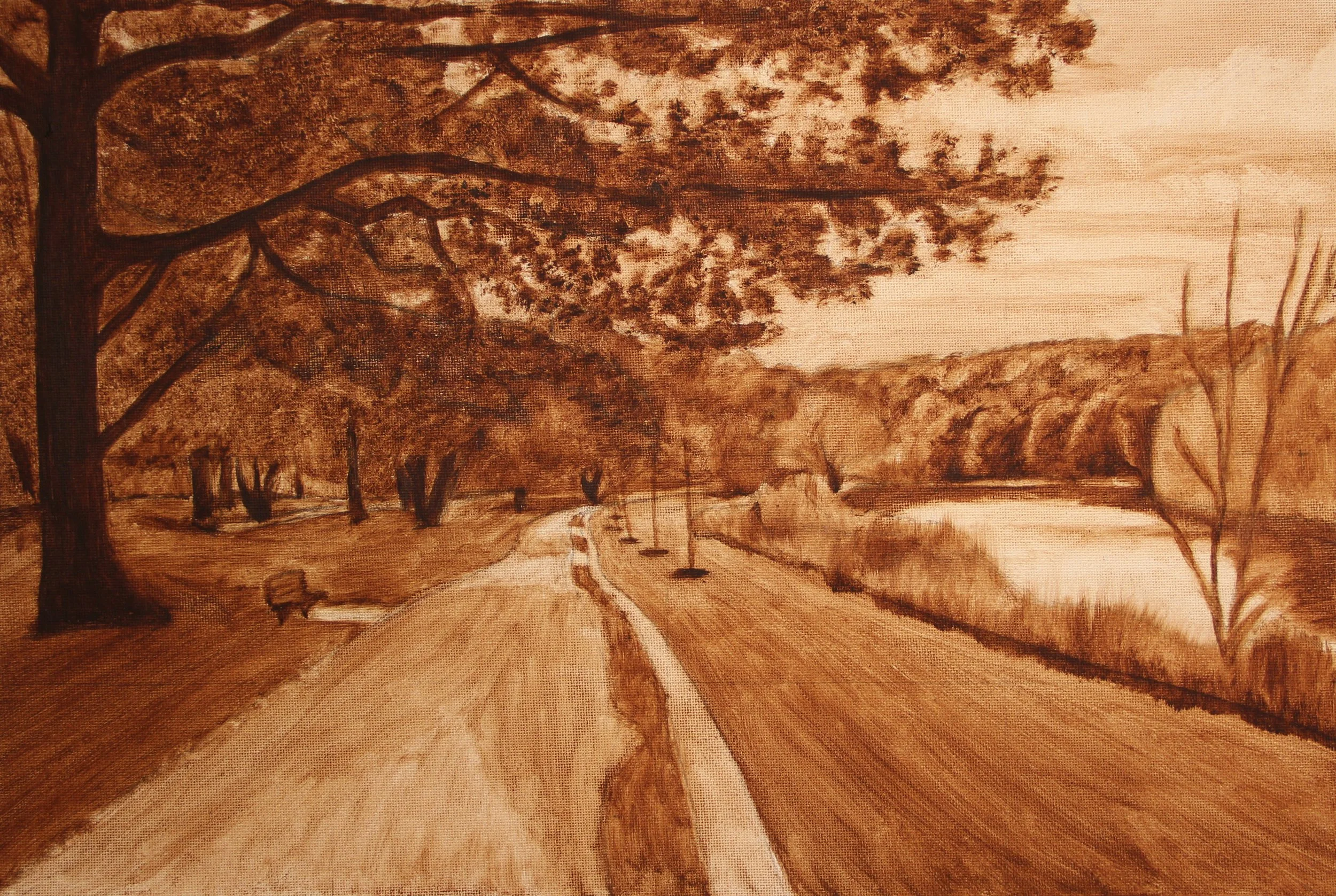 Whenever I'm back home and I pass by this spot, I always think of this special time with my old friend. We had worked on preparatory monochromatic paintings in the lead up to this one in full color. Those can be seen below.